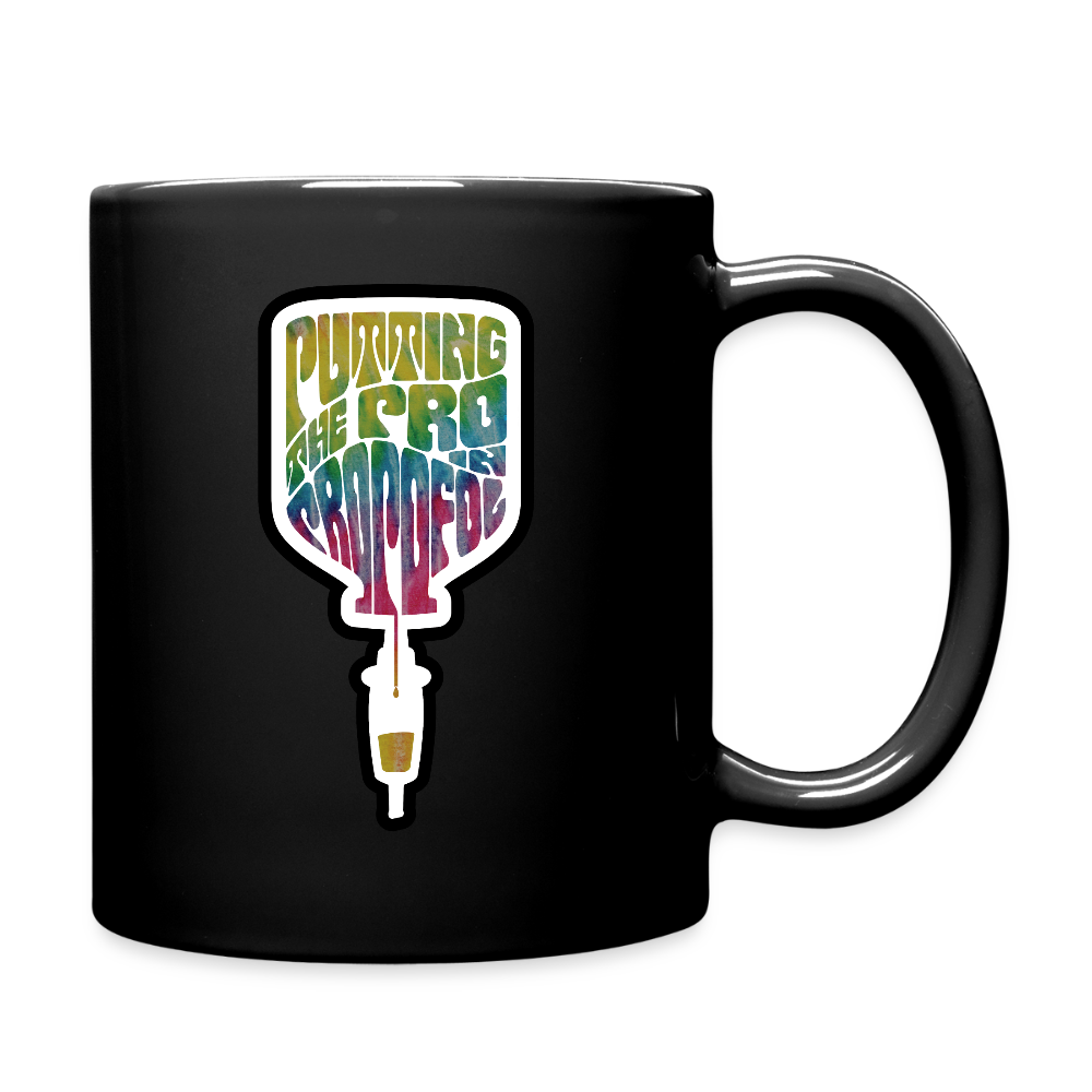 Black 11oz mugs are regularly priced $14.99 and are printed with the same art on both sides.
