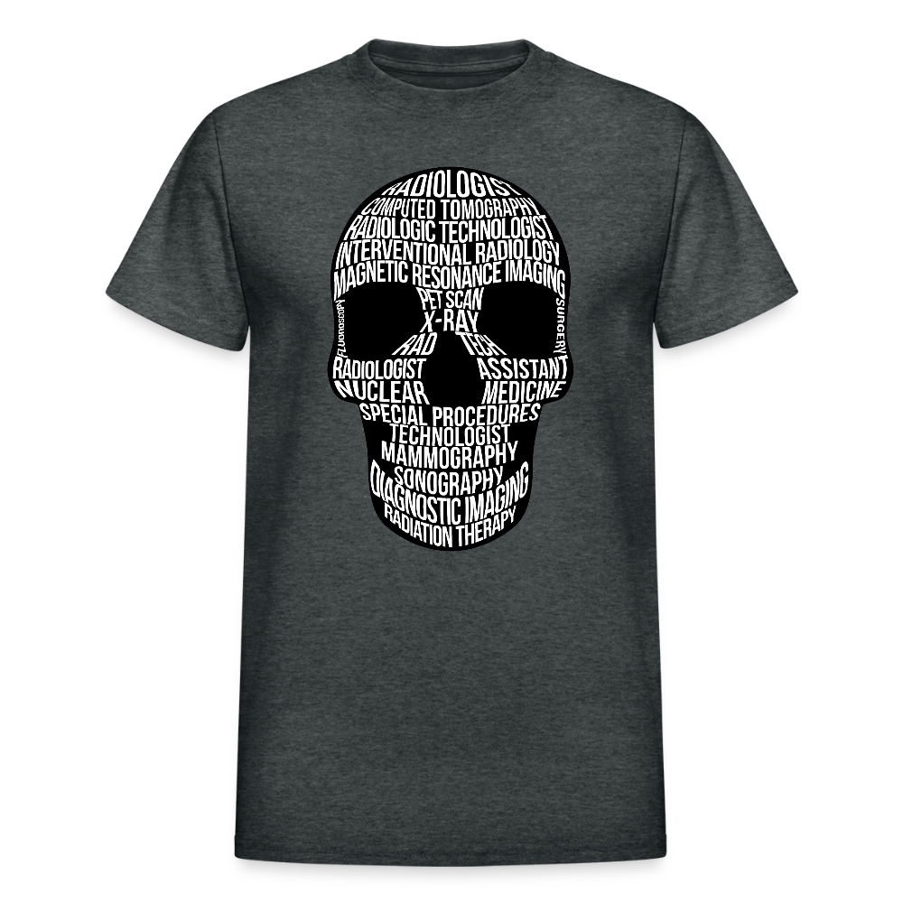 Word art of the majority of diagnostic imaging modalities in the shape of a skull.From the radiologist’s office to special procedures to nuclear medicine to sonography and MRI, most everyone in radiology gets a mention.